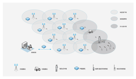 三、構建3層組網方式:林區骨干網(橫向貫通/可聯可拆/IP互聯)、前指指揮網(迅速建聯/機動布置/高度抗毀)、撲火戰斗網(縱向打通/伴隨保障/分流業務)。